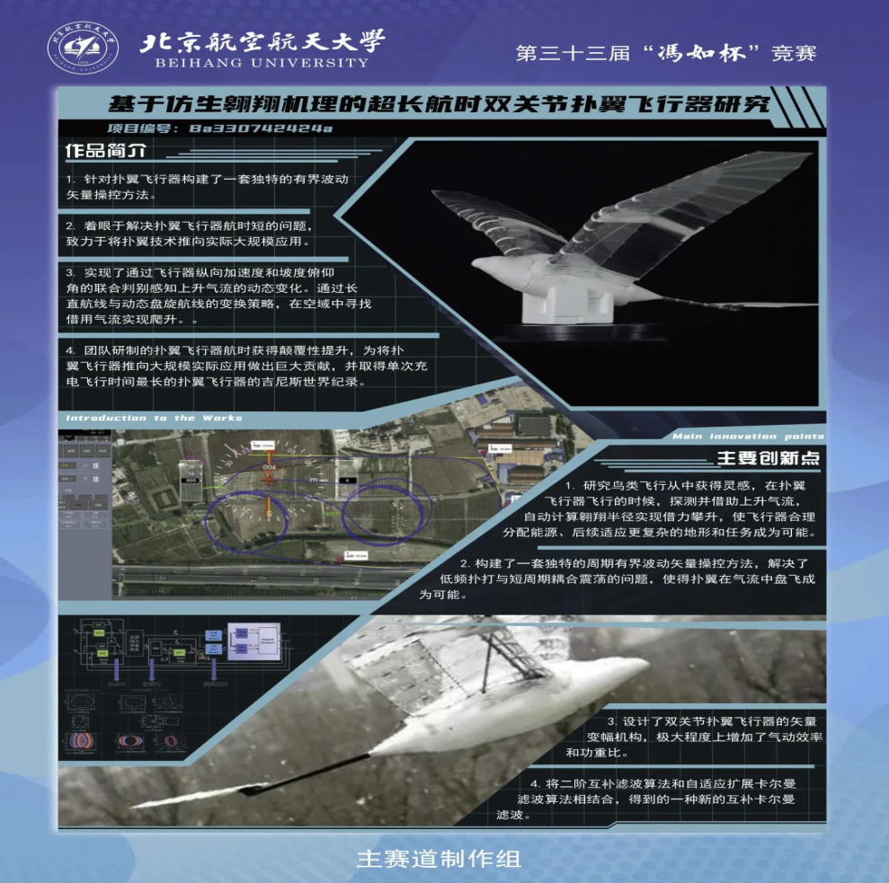 项目名称:超长航时双关节扑翼飞行器