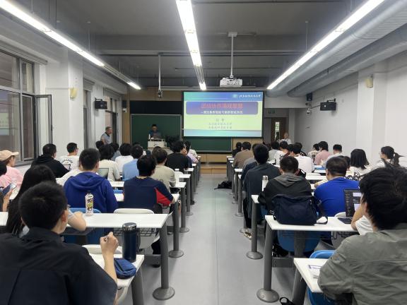 随后任章教授针对集群智能和集群智能系统做了更加详细的介绍,解释了集群行为、特征以及我们有关生物集群需要研究什么。而针对集群中个体的相关行动要求和原则,叙述了邻近原则、稳定性原则和适应性原则等,让大家明白了集群的规律和常见规律。针对集群智能研究和发展趋势,任章教授从集群智能的研究起源开始讲起,到我们现在的人工智能研究阶段,再到网络化系统研究阶段以及后续发展,任章教授都结合自己的理解和实例向大家进行了清晰的阐述,让大家理解了目前这项技术的发展实质。针对集群智能的运用实例,任章教授以无人机蜂群在各项任务中的效果对大家进行说明,同时结合国家对新一代人工智能发展的规划以及中美目前的研究方向给出了自己的理解。最后任章教授向大家说明了现在我们国家在某些研究方向上的不足,呼吁大家团结协作、攻坚克难、迎头赶上,为祖国贡献自己的一份力量!