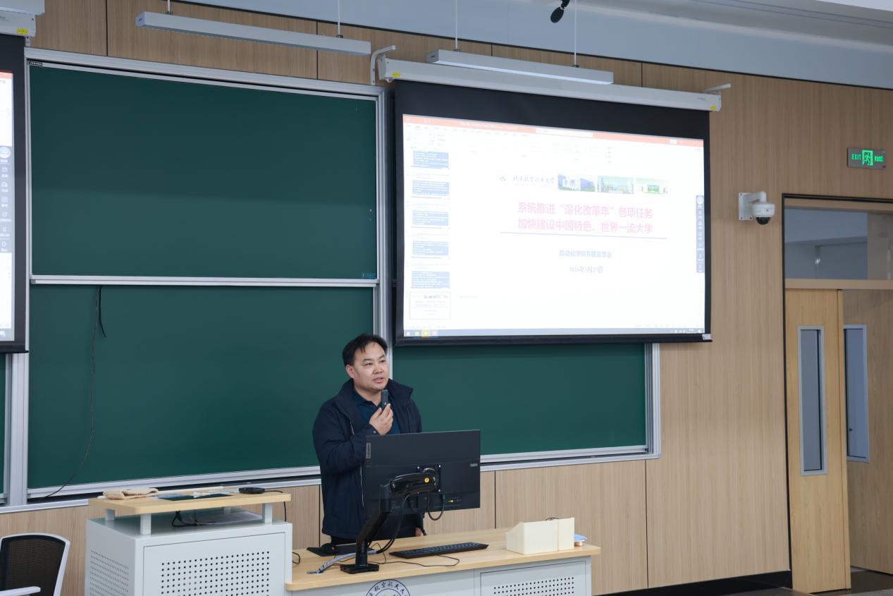 学院党委书记郑征首先系统传达了学校2026年度工作会精神。2026年是“十五五”开局之年,也是学校谋划新一轮“双一流”建设、向世界一流大学行列目标加速迈进的关键之年。郑征指出,今年是学校“深化改革年”,以此为契机,学院将坚持和加强党的全面领导,牢牢把握立德树人根本任务,系统推进有组织科研、高水平师资队伍建设、国际交流合作、治理体系优化以及全面从严治党等关键任务,以整体协同的改革思路推动各项工作落地见效。