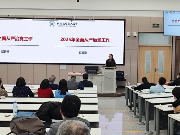 其后,王少萍对学校2025年全面从严治党工作会精神和警示教育大会精神进行了宣贯,回顾学校2024年全面从严治党工作,讲解学校2025年全面从严治党重点工作安排并开展警示教育。她强调,2025年是贯彻全国教育大会精神、落实教育强国建设规划纲要的关键之年,是“十四五”收官和“十五五”规划之年,要坚持以习近平新时代中国特色社会主义思想为指导,深入学习贯彻党的二十大和二十届二中、三中全会精神,坚持和加强党的全面领导,将纵深推进学院全面从严治党与落实学校“数智赋能”年要求、学院年度重点工作相融合,同部署、同推进、同落实,以高质量党建引领学院高质量发展。她指出,要继续深化党纪学习教育成果,深刻吸取违纪违法案件教训,以案为鉴、检身正己。