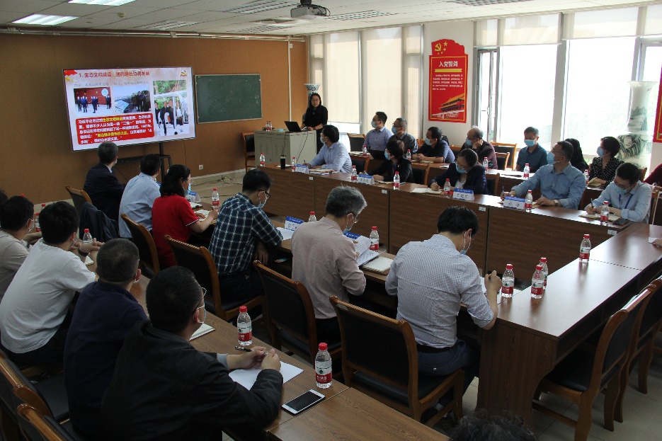 支部副书记王薇做主题发言,她从构建生态文明建设与改革发展间的关系、因地制宜的乡村振兴举措、传统文化继承与发展和科技创新与人才培养的理念等五个方面阐述了习近平总书记的重要思想;支部书记李文玲讲党史学习教育主题党课,他与大家一起回顾了以毛泽东为首的老一辈革命家的英明决策、指挥解放战争的全过程,重温了中国共产党与人民群众间的“军民鱼水情”关系,以及人民群众在历史进程中的作用。