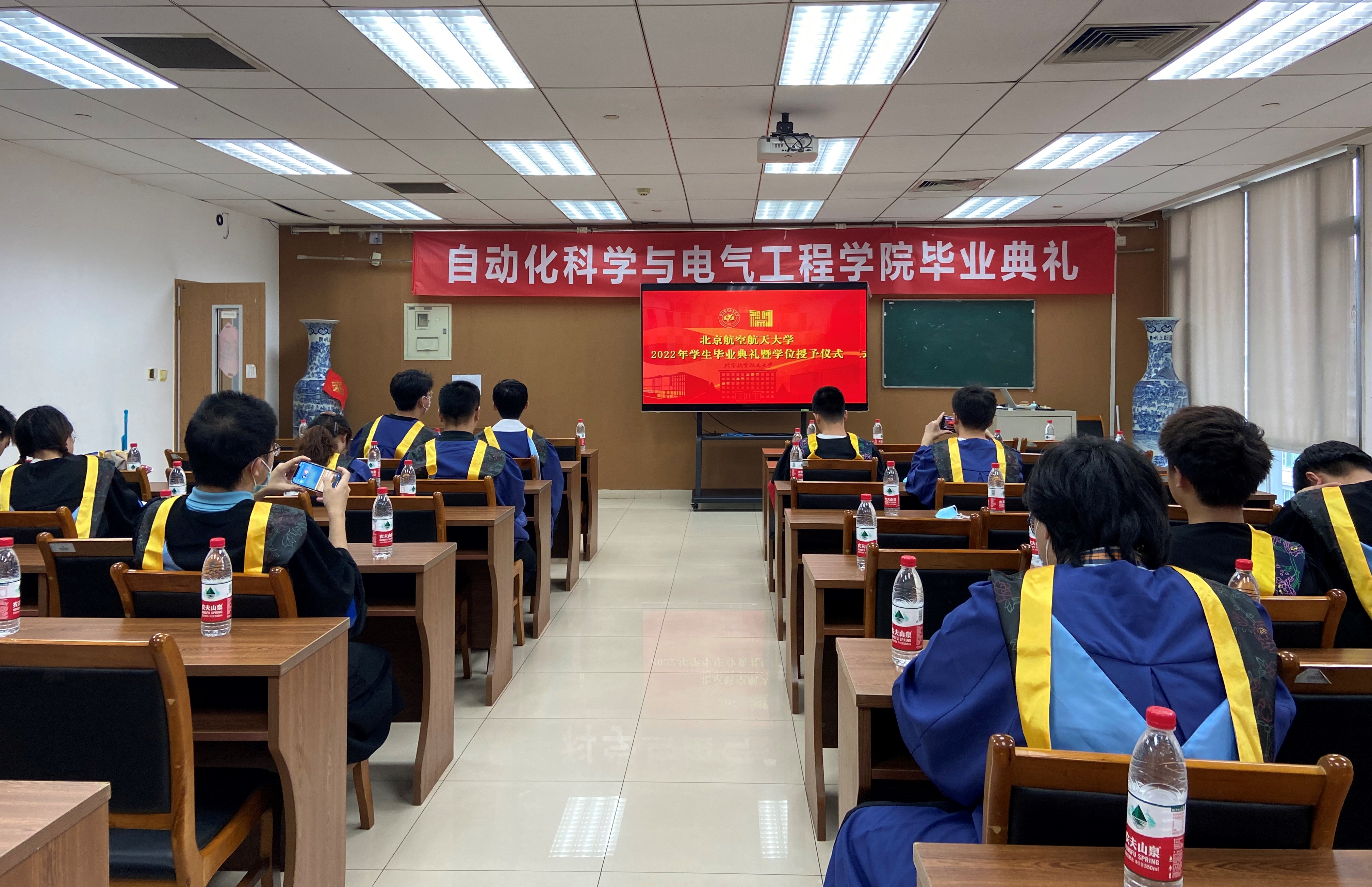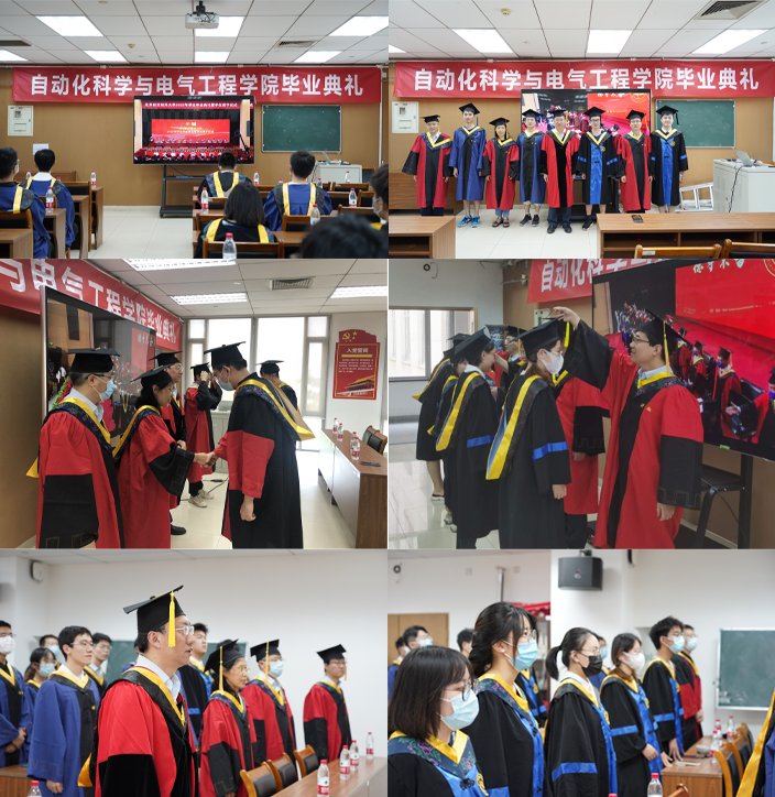 与此同时,自动化科学与电气工程院于学院路校区新主楼E706会议室设立分会场,院长吕金虎、学院党委书记王少萍、副院长王磊、副院长李阳以及本、硕、博共50位毕业生代表参加了分会场现场活动。