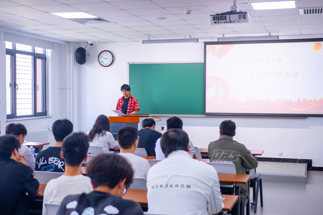 入团仪式在庄严的国歌声中启幕。主持人宣读2024-2025学年春季学期新发展团员名单后,入团介绍人代表王星蕴领学《中国共产主义青年团章程》中团员义务与权利的核心条款。新团员代表蒋林甫表态:“将以青春汗水为团旗增辉”,优秀团员代表张烁祎则呼吁新团员“在科技创新与社会实践中发挥模范作用”。