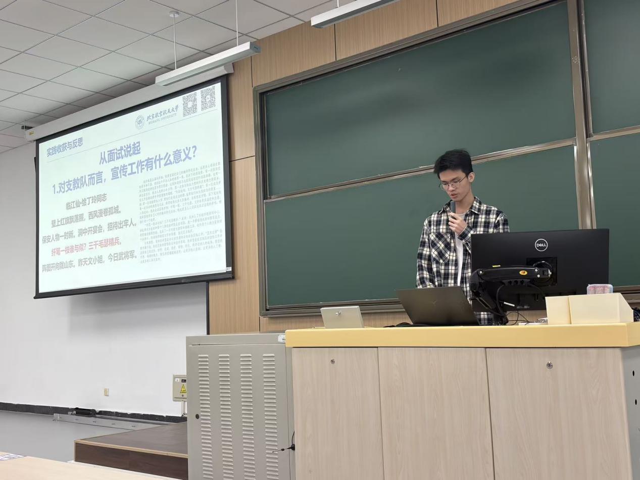 陈铭良学长以实践活动与宣传工作为主题,结合担任蓝天之梯支教队副队长、正规滚球app平台官网本科学生会副主席的经历,分享他从三期支教实践与所负责的宣传工作中得到的成长与收获。为了突破支教队宣传形式单一的困境,他带领宣传组同学打造了全方位多维度宣传矩阵,遵循“主线串联、多线并举”的设计理念,使蓝天之梯支教队在社会层面取得了更为广泛的认可。在宣传工作中,他以情动人,唤起心灵共鸣;在实践生活中,他开放视野,发掘人性光辉。最后,陈铭良学长还鼓励同学们放下焦虑,“勇敢尝试、大胆探索,做一些自己喜欢的事,也做一些自己不那么喜欢但是良药苦口的事”。