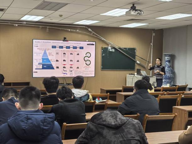 论坛分为主题分享与交流互动两个环节。报告中,钟丽萍围绕低空经济背景下的无人机与涵道动力飞行器发展现状,系统介绍了涵道动力飞行器在整机设计、动力布局、飞行控制及安全冗余等方面的关键技术。她结合自身科研与产业实践经历,从技术演进、产品形态到商业化落地路径,对涵道动力飞行器在城市低空通勤、物流运输和应急救援等应用场景进行了深入浅出的讲解,帮助同学们加深了对无人机及相关交叉学科前沿方向的理解。