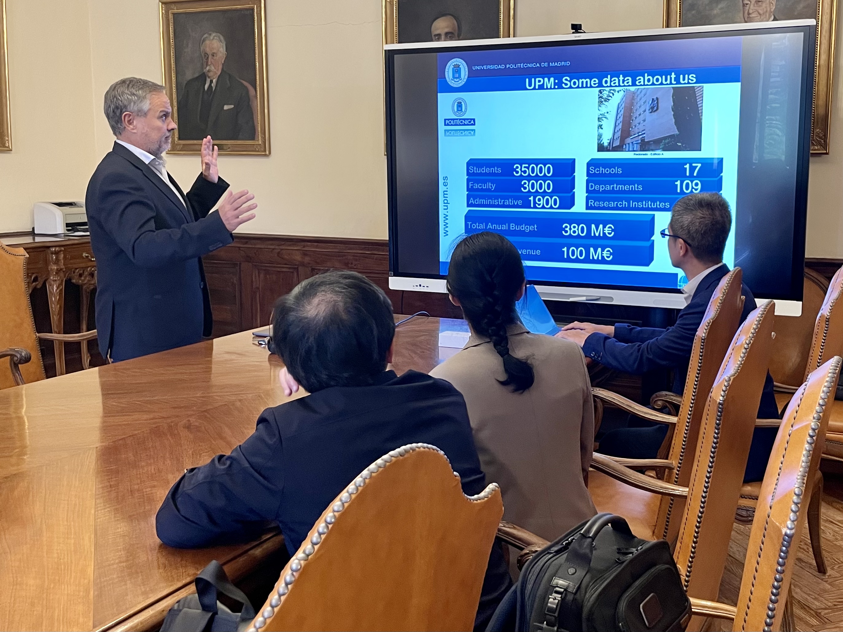 在马德里理工大学访问期间,双方就合作的北航-马德里理工大学飞行控制系统创新型人才双硕士学位联合培养项目交换了意见。双方对项目运行3年来可以实现相互派出交流表示欣慰。访问期间,学院团组成员还参观了该校的信息技术学院办公楼及工业电子实验室,并与科研人员进行深入学术交流,同时探讨了下一步双学位培养课程及实习的相关问题。